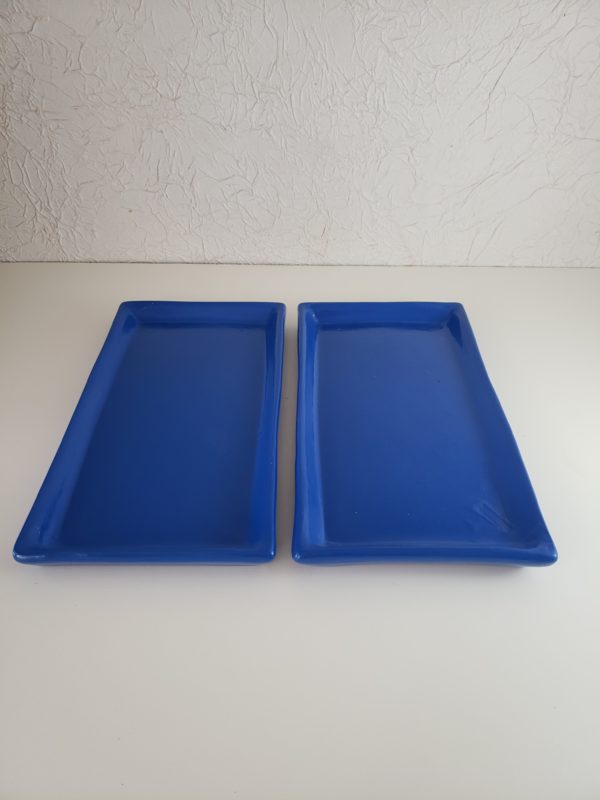 Bandeja cerâmica retangular cor Azul Bic (Locação)