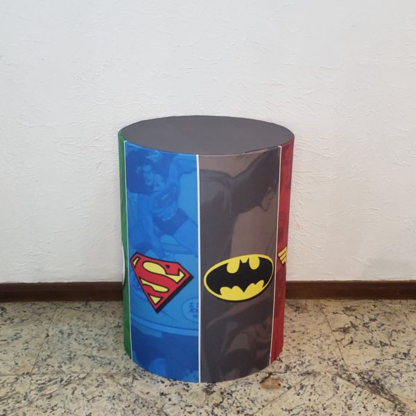 Capa para mesa cilindro M Sublimado Super Heróis Brasão (Locação)