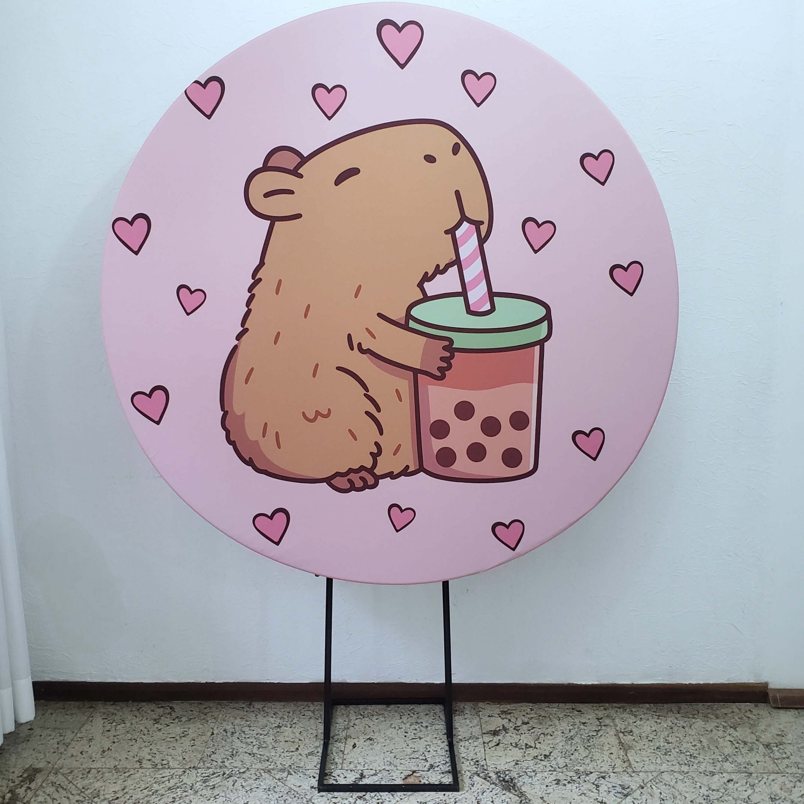 Suporte Redondo com Tecido Sublimado Capivara Cute (Locação)